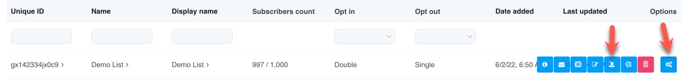 - To the right of the list you want to import users into, click the Gear and click the Import icon.
