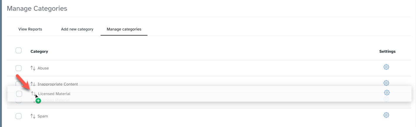 To arrange categories, click the up/down arrow to the left of the category name and drag it up or down depending on where you want it. Drop it into place.