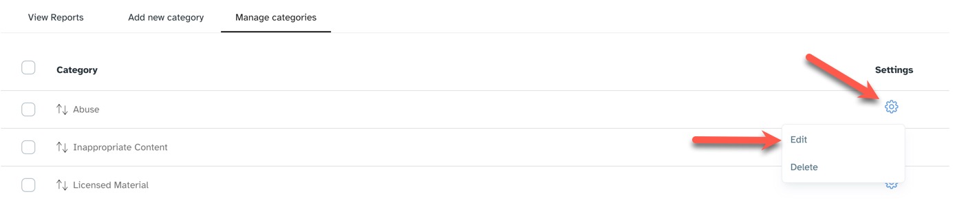 Click the gear to the far right of the category you want to edit and choose "Edit" from the drop-down selection.