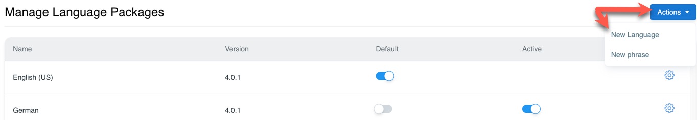 On the far right, click the drop-down "Actions" menu and select "New Language."