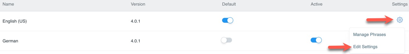 To edit language settings, click the gear to the far right, and choose "Edit Settings."