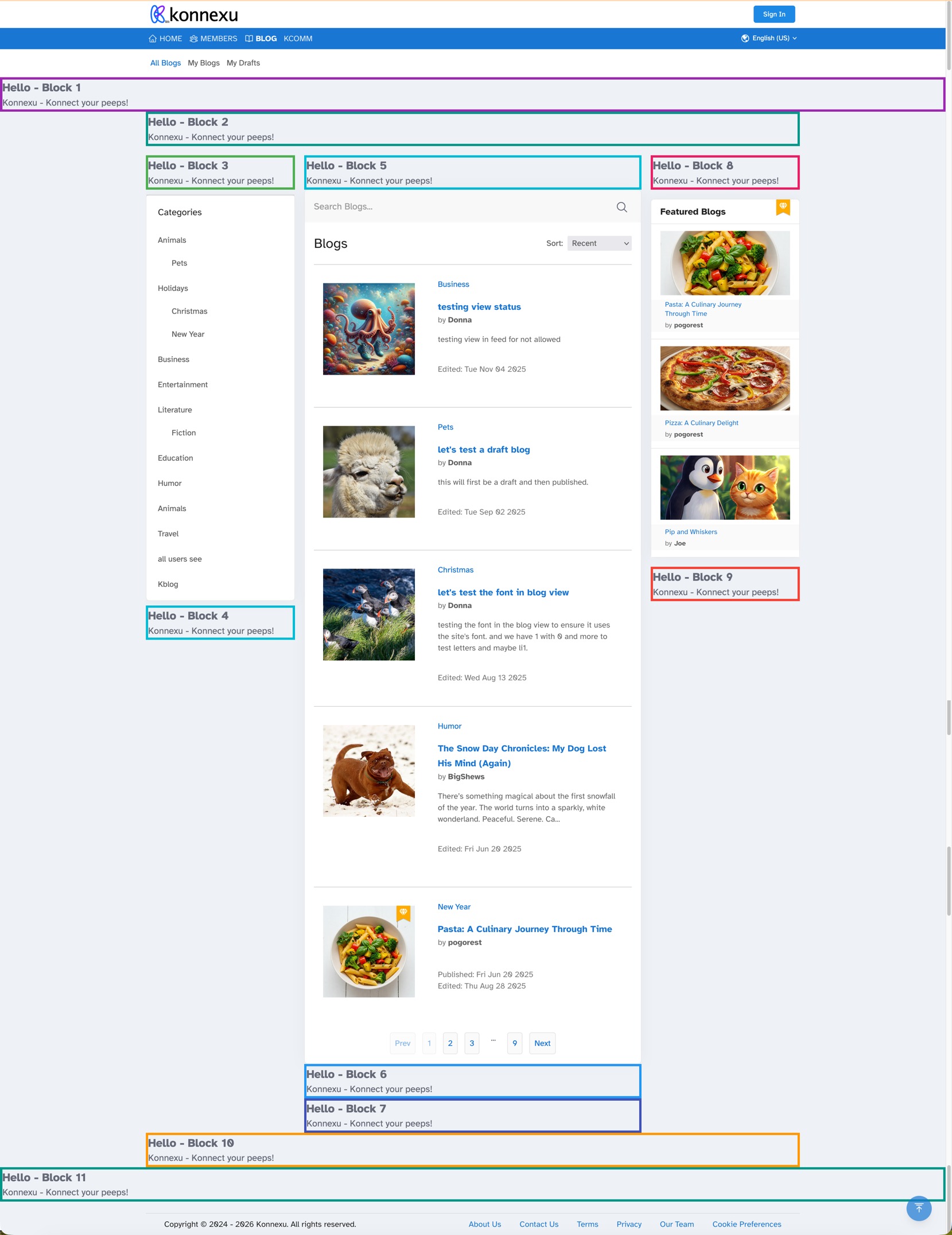 - Block 9: Right column, below content blocks.