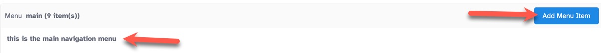 Click "Add Menu Item" to the right of the location you want to add your menu. At this time, there are two choices, Main and Footer.