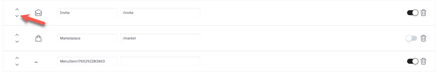 To arrange the menus, click the up/down arrows to the left of the menu you want to move up or down. Save changes when done.